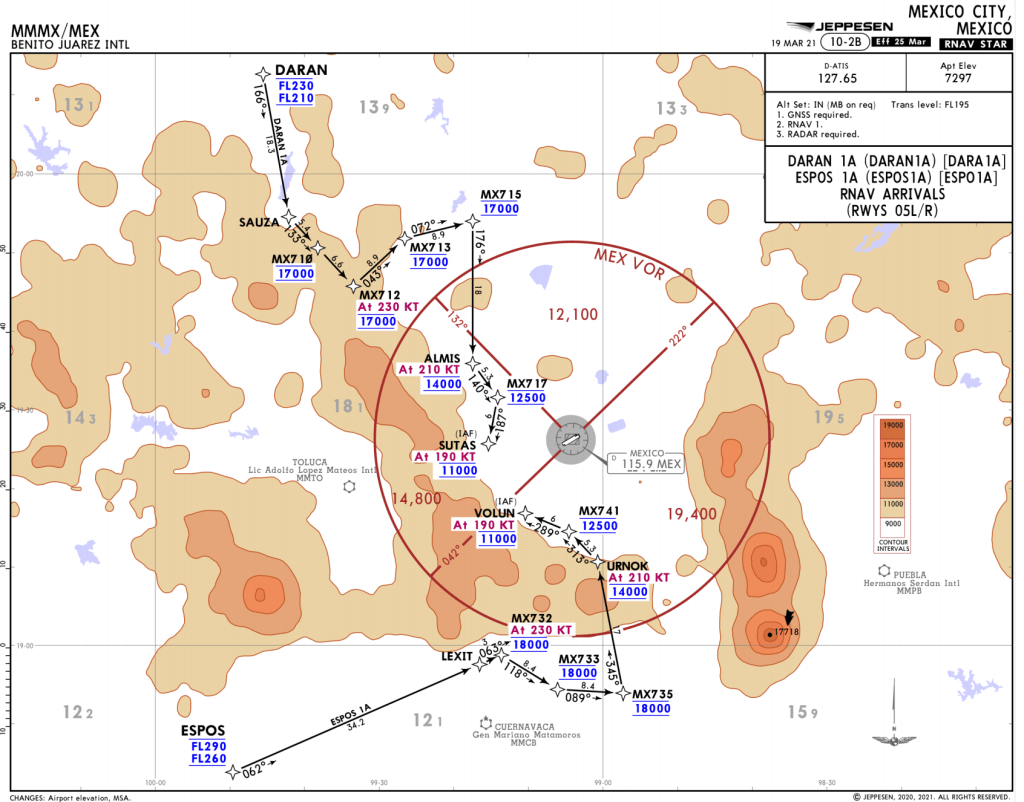 Después de estos cambios que entraron el vigor el día 25 de marzo de 2021, se diseñaron nuevas llegadas por instrumentos (STAR) que aprovechan las ventajas operacionales de la Navegación Basada en Performance PBN, y organizan a los aviones provenientes del Sur y Norte en una trayectoria en forma de T, una proveniente del Norte y la otra del Sur.