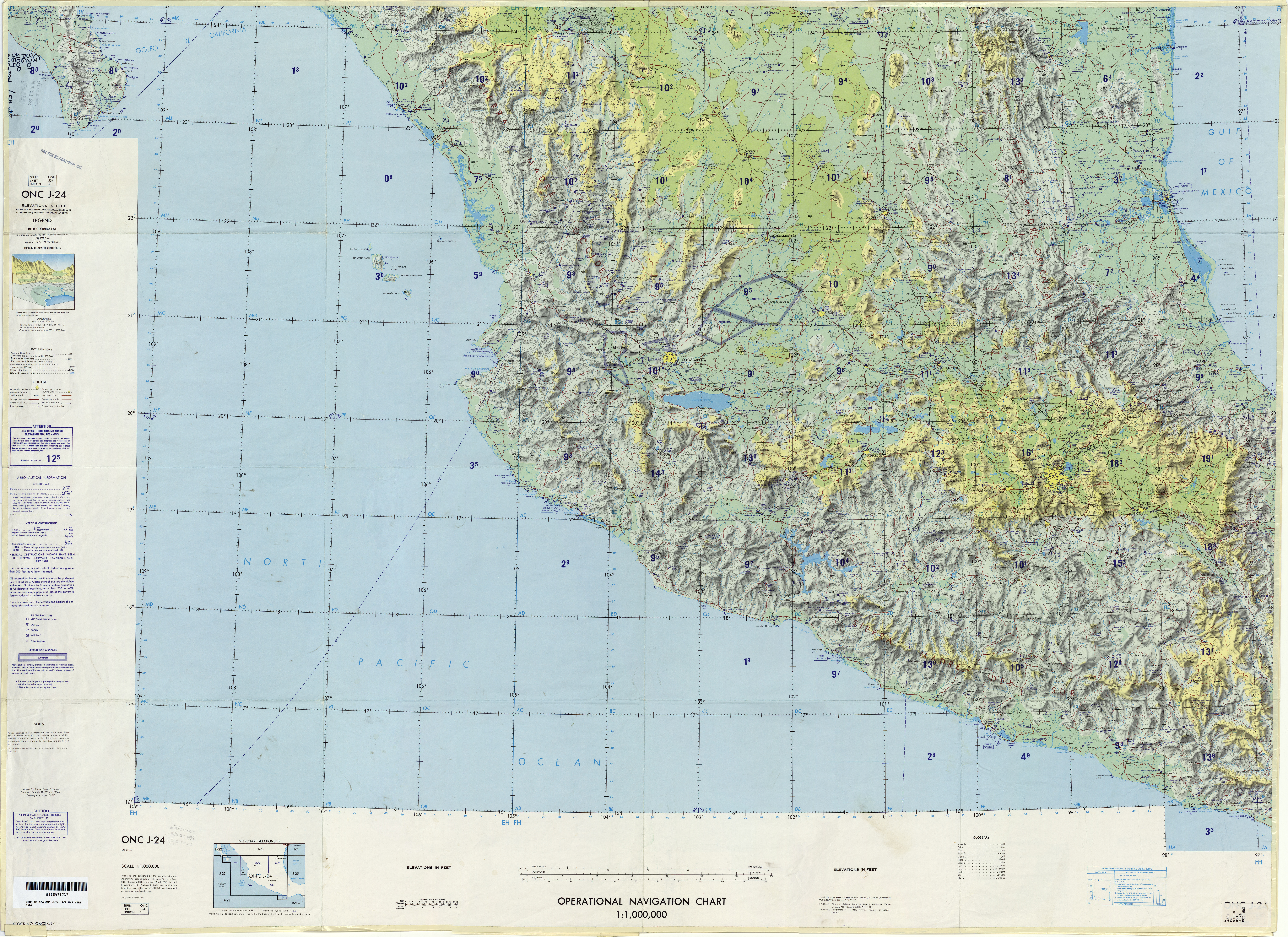 El gobierno de Estados Unidos publicaba cartas de navegación visual para todo el mundo en diferentes escalas. En el caso de Mexico se publicaron cartas tipo WAC y de 1:500,000 y 1:250,000.
